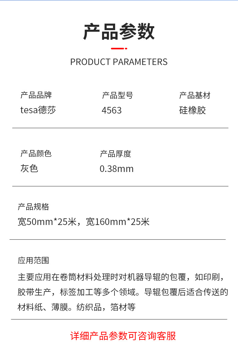 德国德莎4563胶带 平面防滑防粘胶带 硅橡胶导辊包覆标签印刷