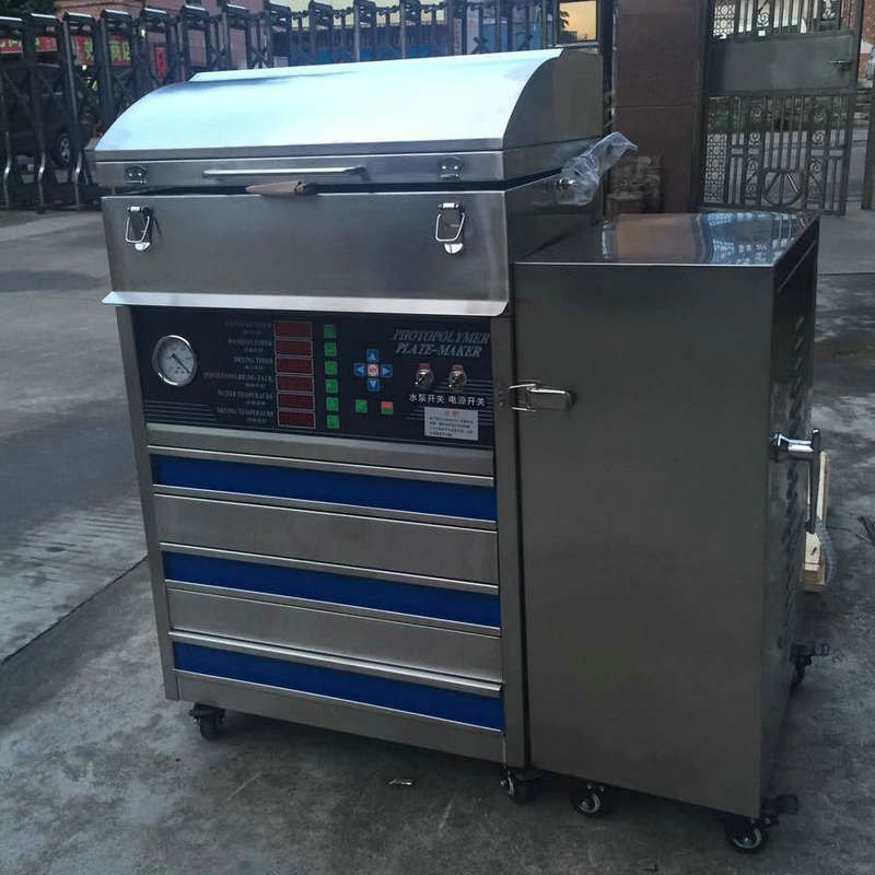 集曝光、洗版、烘干、后曝光多种功能于一体。微处理中央控制板,操作简便。 采用紫外线晒版UV灯管,专业AAA电子镇流器,让UV灯管发挥最佳状态,提高工作效率,灯管寿命更长;日本进口三菱真空膜,让紫外线穿透力更强、更均;进口自粘版材自动粘连洗版,方便作业。洗版毛刷采用上置方式,洗版水由上往下喷淋洗版延长毛刷使用寿命,洁版更合理。 独立水箱智能加热恒温系统,洗版水循环、过滤,烘箱热风恒温烘干,符合印版制作要求。 全采用不锈钢加工工艺,确保机身刚性及耐用。 高精度真实完美再现图文。