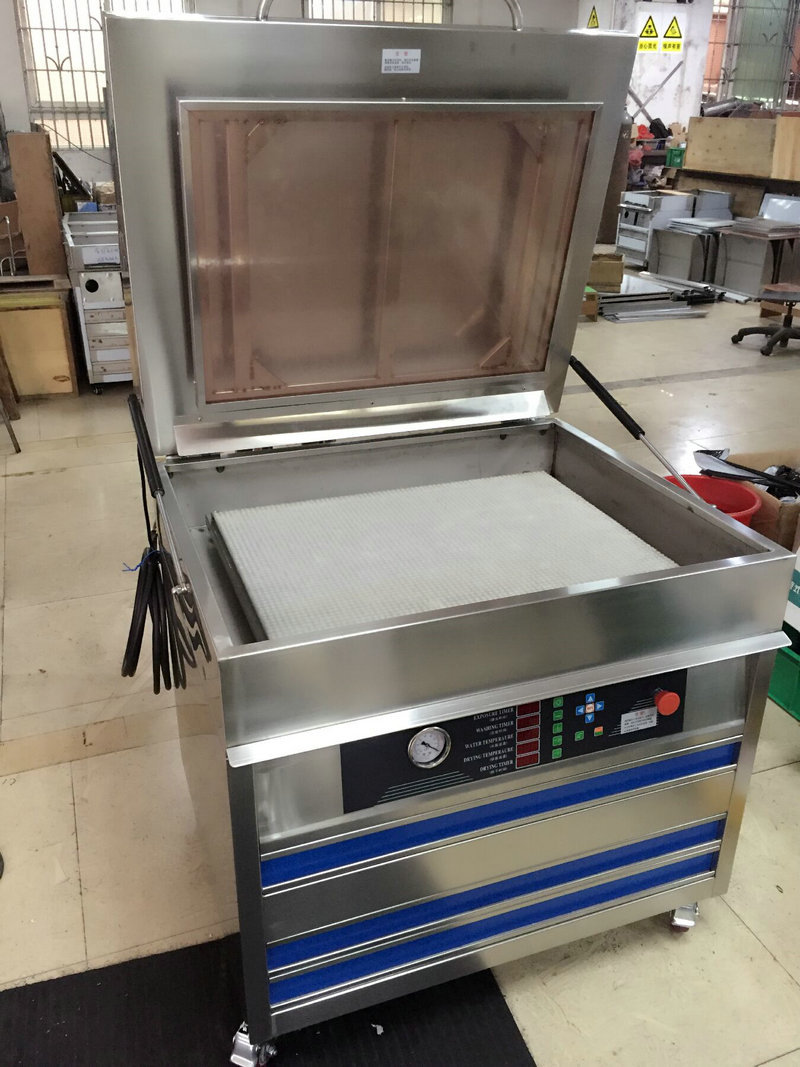 集曝光、洗版、烘干多种功能于一体。微处理中央控制板,操作简便。采用菲利浦紫外线晒版UV灯管、专业AAA电子镇流器,让UV灯管发挥最佳状态,提高工作效率,灯管寿命更长;日本进口三菱真空膜,让紫外线穿透力更强、更均;进口自粘版材自动粘连洗版,方便作业。水箱智能加热恒温系统,烘箱热风恒温烘干,符合印版制作要求。 全采用不锈钢加工工艺,确保机身刚性及耐用。高精度真实完美再现图文。